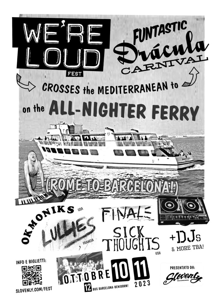 One of the most exciting segments of the We’re Loud Fest is the all-nighter ferry adventure. Set sail from Rome to Barcelona on October 10th and 11th, and let the music take you across the waves. With live performances by bands like the US-based OKMONIKS and SICK THOUGHTS, the journey becomes a floating festival, where the celebration continues seamlessly. Accompanied by a stellar lineup of DJs, including Mr & Mrs A (Hipsville), Oihane Follones, and Hombre Cohete, this voyage ensures that the festival spirit remains alive from dusk till dawn.