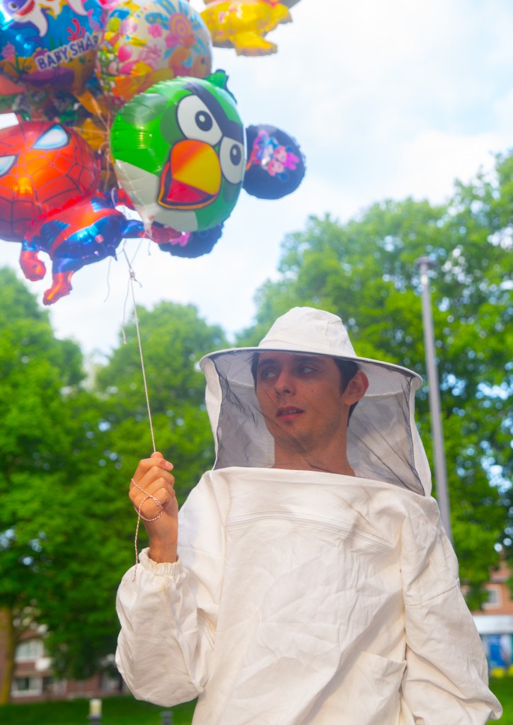 Hold onto your honey pots, mate, you’re about to meet Bumble B. Boy. If you’ve ever attended a children’s birthday party or found yourself in the midst of a lively concert crowd in the Netherlands, chances are you’ve encountered this enigmatic figure. Donned head-to-toe in a pristine beekeeping suit, Bumble B. Boy is a symbol of happiness and exuberant childlike joy. With a heartwarming smile and an obscured face beneath the beekeeping gear, this character embodies the epitome of fun, setting the stage for laughter, giggles, and a rollicking good time.