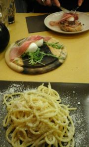 After all the walking we were ready for a serious birthday gorge fest. We decided on the Flavio al Velavevodetto restaurant in the Testacio district – a working class neighborhood with some of the best traditional eateries.