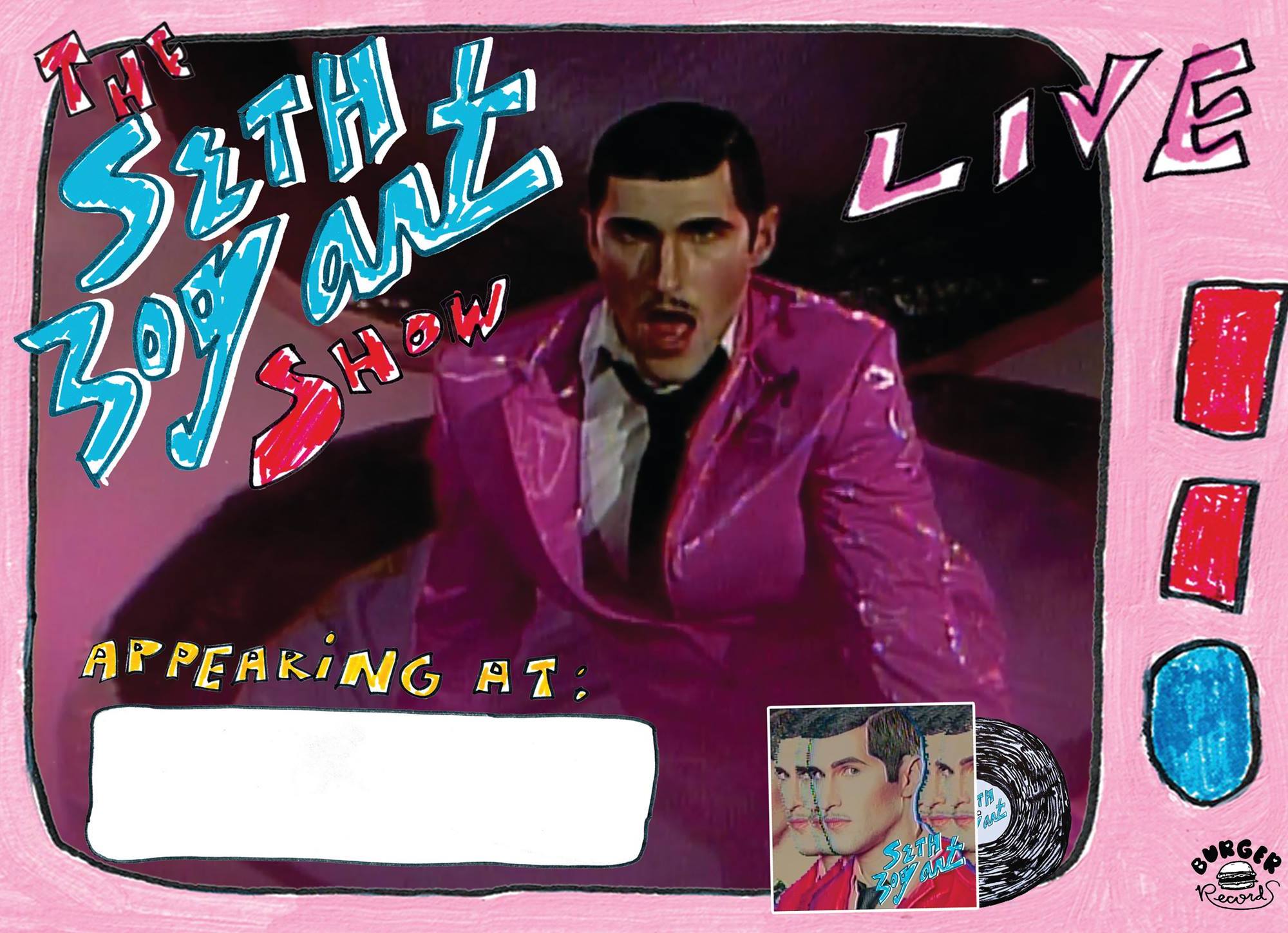 The whole performance was set to 40 minutes of stop animation and film made by Seth Bogart and his friends. This included the official videos to some of the songs, but was also packed with funny little skits played while he changed costumes – a real showman. Seth bounded onto stage in his lipstick pink plastic suit, coloured-in jet-black hair and moustache, and red lips. Everyone fell in love (duh). Opening with ‘Hollywood Squares’ it didn’t take long for the audience to get into the swing of things, despite most of the projection being obscured because of how small the venue is, and his constant cries for everything to be louder.
