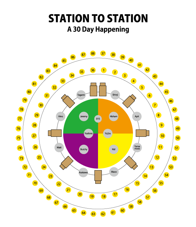 At last the show began, but my guest hadn’t arrived yet… All of the performers started to enter the stage. The cymbal players were all dressed in coloured shirts, like the colours of their places in the circle, the guitar players, the other drum player… and the proper Boredoms, at last in front of my fucking eyes.
